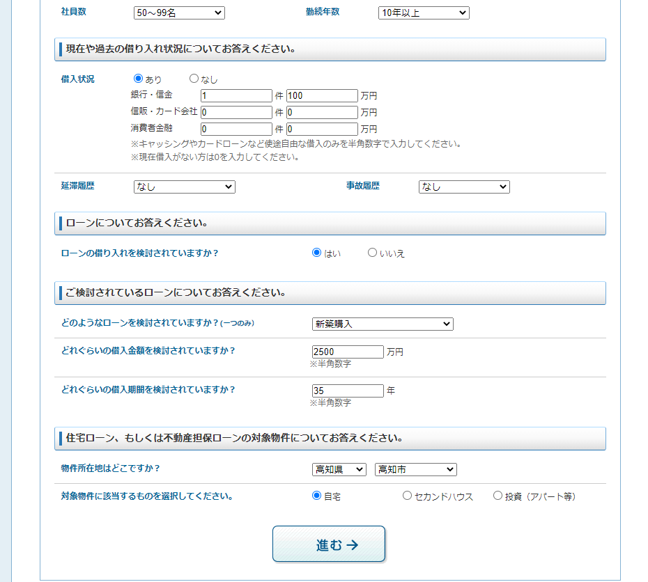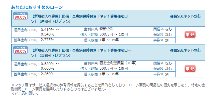 上記の条件では、「金融機関からの評価は高く、マッチするローンも多い」という診断結果でした!