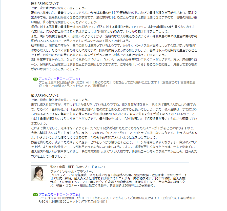 現役ファイナンシャルプランナーのアドバイス付でとても参考になります。