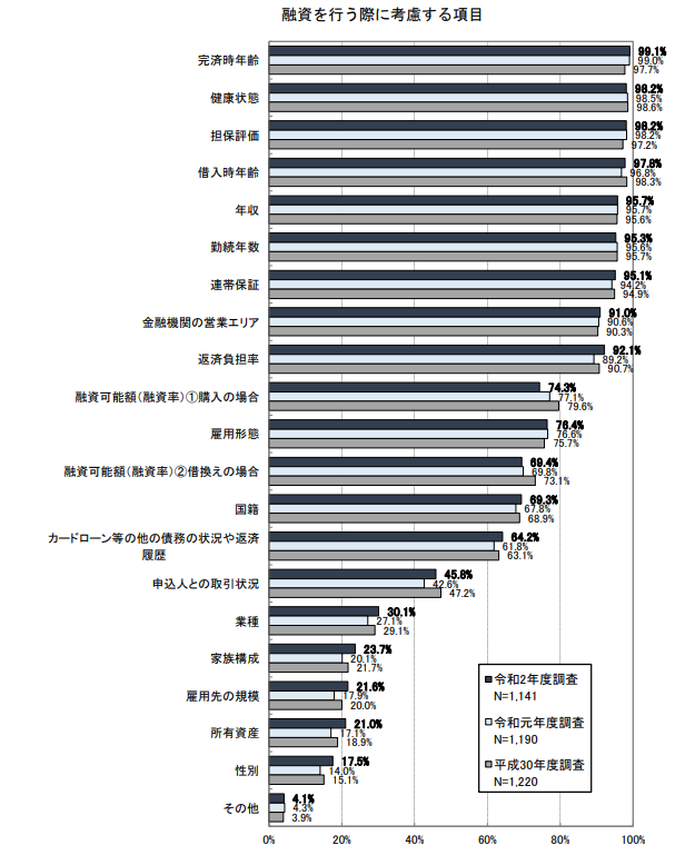 国土交通省による「令和2年度民間住宅ローンの実態に関する調査 結果報告書」によりますと、住宅ローンの審査において「スコアリング方式により一部審査を行ってい