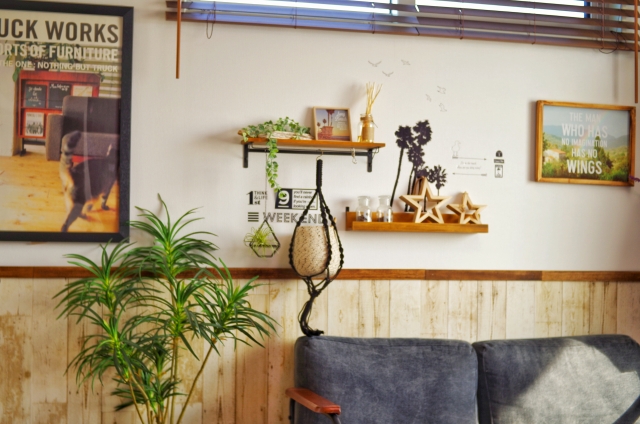 仕上げにTHEアメリカンなブリキの雑貨やプレート、デニムグッズなどアメリカをモチーフにした小物アイテムを追加すると、さらにカリフォルニアスタイル感がアップしますよ。