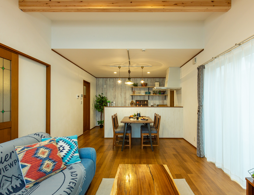 ローコスト住宅で建物の価格を抑えつつ、家具やインテリアで色合いや風合いを工夫することでとても素敵なカリフォルニアスタイルの住まいを叶えられます。
