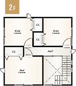 こちらのプランの特徴は、家族の変化に対応した間取りということ。1階部分は共有スペースとして、そして2階部分はプライベートスペースとして分けることができ、子供の成長に合わせて部屋を使い分けることができます。