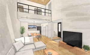 1.LDK19帖の広さにたっぷりの吹抜け